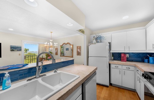 Upstairs Condo 1 bedroom/1 bath is situated directly on the Intracoastal Waterway with breathtaking views of Sunrises, Moon over the water at night, yachts boats and jet skis of all sizes cruising up and down the waterway. The screen enclosed porch is 23ft x 6 ft a great place to watch the birds and squirrels as you dine or just relax in the evening with your favorite drink. Such a great spot to entertain, read or meditate.