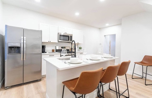 Inside, unwind in the bright living room, cook meals in the stylish kitchen, and rest comfortably in roomy bedrooms with plush beds and modern furnishings. The home’s layout suits groups, couples, families, or solo travelers looking for a comfortable and private home base. Security cameras are placed at the front and back entrances for peace of mind, and the home enforces a no-party policy in line with Airbnb guidelines.