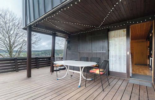 For children there is a sandpit and other play equipment in the spacious garden.a few meters away from the house the nature begins and hiking and cycling trails invite you to extensive tours through the northern Black Forest. The house has two floors. On the first floor is the spacious living room, a cozy kitchen with dining table and a bathroom with shower. Upstairs there are the bedrooms (1 double room and two single rooms with one bed each) and another toilet. Highlight is the large, partly covered terrace, from which offers a magnificent view of an unspoilt landscape.