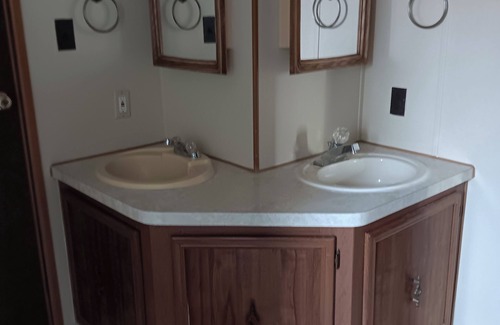 This trailer is ideal for summer fishing trips or for fall and winter stays with a free standing wood stove to keep you warm. It is located in Fort Smith, MT, a walking distance from Yellowtail Market or great fishing at the afterbay. Or drive to the famous Big Horn River for the best fly fishing in the US or take the beautiful drive to the dam and waterski on the lake. This home can comfortably sleep 6 people with a queen sized bed, two twin beds and a sofa bed in the living room. The kitchen includes an oven, fridge, dishwasher, microwave, table and chairs and a breakfast bar with stools. Internet is included with a roku TV with lots of programming. There is also a grass area in front with a picnic table for eating outside and a new covered porch.