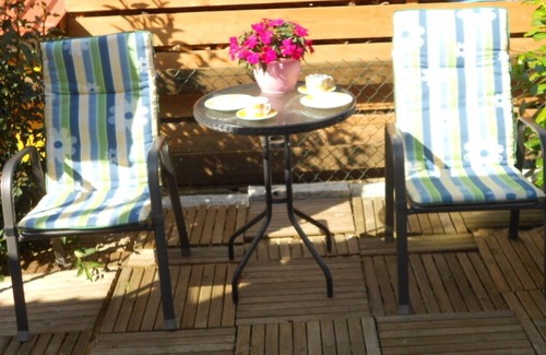 2017 completely renovated and newly furnished. High quality upholstered bed with top mattresses. Tastefully decorated, loving details. Approximately 30 square meters and at ground level. It is in a separate house and consists of a combined living / bedroom and kitchen area with dining area and a shower room. Beautiful garden. Seating in front of the house, there may also be smoked.