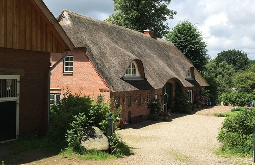 The newly created stylish and very comfortable apartment for 2 persons under thatch in old walls in a secluded location between Groß Wittensee and Haby in the nature park Hüttener mountains awaits you. Enjoy the beautiful view of the lake over the meadows during breakfast on the dormer window or grill in the evening in your Sonnenkuhle with beach chair.