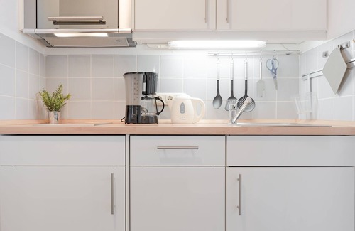 The kitchen is equipped with a refrigerator and a dishwasher, as well as a coffee maker, a microwave, and a toaster. Connect to the internet, or get cozy in front of the TV. And because there's access to laundry facilities, you can go a bit lighter on your packing.
