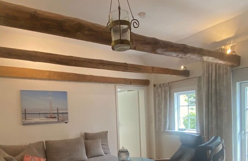 Friendly (house-trained) dogs are welcome "guests"; they must be registered and may not remain alone in the accommodation. Surcharge for final cleaning once € 20.00. No other pets are allowed. You can accompany a maximum of 2 dogs in this apartment. Two dog beaches, on the steep coast or next to the surf beach, are within easy walking distance (approx. 2 and 4 km from our house). The popular hiking trail for the morning walk between Feld and Wiesen begins just 100 m away from us.