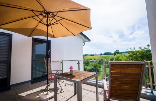 Fully equipped, built in 2016 apartment with balcony. Enjoy stunning views over the nature reserve Gaisweiher, paddocks and the listed church Segringen.