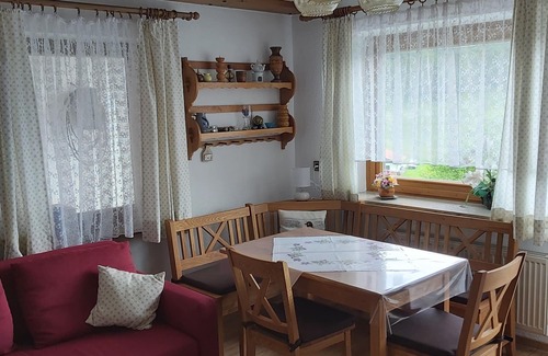 Vacation apartment in a quiet, sunny high-altitude location with excellent panoramic views is located in Marktschellenberg. Vacation apartment in a quiet, sunny high-altitude location with excellent panoramic views provides accommodation, featuring Bedding/Linens, Fireplace/Heating, Internet, among other amenities. This Apartment features Bedding/Linens, Fireplace/Heating, Internet, to make your stay a comfortable one.