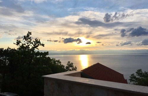 In the heart of the Kvarner Bay, not far from the fashionable Opatija is our **** apartment with pool and sea view in a privileged location in the immediate vicinity of the Ucka National Park. High above the turquoise Adriatic coast with a breathtaking view of Rijeka and the islands of Krk and Cres, we are in a paradise for sailors and divers as well as nature lovers and those looking for relaxation. For our guests, we have built a country-style house in high quality style with great pleasure and manage it according to German standards. With us you will find very tastefully and lovingly furnished 4-star non-smoking apartments with WiFi, satellite TV, air conditioning, fireplace, pool and grill. We attach great importance to cleanliness and offer you an all-round carefree package for a relaxing holiday. We want you to feel comfortable with us! As we like to live ourselves, we would like to welcome our guests! We have natural materials from the region, such as. B. Marble from Istria and other natural stone used for indoor and outdoor use. Our modern "Villa Sabine" in Medveja built in the style typical of the country, is located 200 m above sea level not far from the Ucka nature park and about 1 km from the beach. The equipment of the apartments is very high quality, all have sea and pool views, stoves, modern fitted kitchens, natural stone bathrooms and double beds made of solid oak. Our small village Kali consists of just a few houses and the "Konoba Kali" with excellent cuisine, about 400 m away! Here in Kali it is possible in the midst of nature, surrounded by olive and fig trees, to simply let your mind wander and escape everyday life or go on a hiking tour in the Ucka Nature Park.