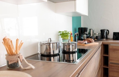 The kitchen is equipped with an oven, a refrigerator, and a dishwasher, as well as a coffee maker, an electric kettle, and a microwave. Bathroom amenities include a hair dryer, towels, and toilet paper. And you can even travel light because you'll have access to laundry facilities.