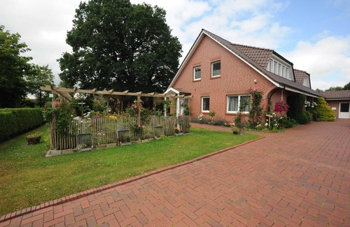 Spacious upper apartment in a quiet rural location on the nature reserve in the district Veenhusen. A large well-kept private garden area with terrace offer optimal conditions for your relaxing holiday. A parking space is located directly at the house. Garden house with bar available by arrangement. Moormerland is located in the city triangle of Emden, Leer and Aurich. The Fehnlandschaft Moormerlands is characterized by canals, Wieken and the Fehn-typical bascule bridges. Signposted cycling and hiking trails amidst a fascinating natural landscape want to be explored on foot, by bike or by boat. A tourist highlight is the Ems barrage in Gandersum. Here you can experience the latest technology. Cruise ships of the Meyer shipyard get over the Ems barrage in the big wide world. Culturally Moormerland has a lot to offer, eg. Such as the Museum Alte Seilerei, the lock, the pumping station and the Old Libra in Oldersum, the Gallerieholländerwindmühlen in Neermoor and Warsingsfehn, the Museum Hueitens Huus and numerous churches and historic cemeteries. Event highlights in Moormerland: every two years in May the Schollentage, the Hatshauser Feuerwehrfest on the second weekend in July, on the last weekend of July the Moormerländer Weinfest, the Oldersumer Herbst with Krimilesung, Michaelismarkt and Apple Festival annually on the third weekend in September, in December some villages different Christmas markets, with a special flair, instead.