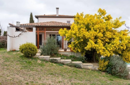 **As part of the water restriction measures linked to the drought in certain departments, please note that the rental swimming pool may be closed until the lifting of the legal restrictions authorizing the filling and back-up water for all swimming pools and pools for private use. Here you will find all the official information on the measures to limit or suspend the use of water in France** beautiful villa "Akwaba". In the resort d'Alignan du Vent, 25 km from the sea, 25 km from the beach. Private: garden 600 m2 (fenced) with wildlife garden and trees, swimming pool angular, fenced (4 x 8 m, depth 150 cm, seasonal availability: 01.May. - 30.Sep.) with internal staircase and shutter cover. Boules, parking at the house. Bakery 300 m, café 400 m, bus stop "ligne 12 Béziers / 669 Pézenas" 200 m, railway station "Béziers" 22 km, sandy beach "Valras" 25 km, lake Salagou Parc du haut Languedoc 35 km. Riding stable 2 km. Nearby attractions: Béziers 22 km, Pézenas 7 km, Agde 22 km, Carcassonne 108 km, Région de vignes et de Patrimoine. Hiking paths: Les Balcons volcaniques 15 km, Sentier des Béals 17 km, Cirque de Mourèze 17 km.
