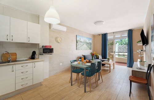 The vacation home 'Apartmento Palace Playa Paraiso', which is situated in Adeje, overlooks the nearby mountains. The 50 m² property consists of a living room, a well-equipped kitchen, 1 bedroom, and 1 bathroom and can therefore accommodate 2 people. Additional amenities include high-speed Wi-Fi (suitable for video calls), air conditioning as well as a washing machine.