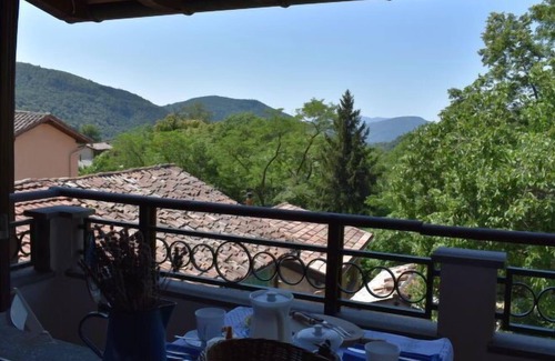 "Valleyview Cottage", 4-room house 80 m2 on 3 levels, south facing position. Cosy furnishings: 1 double bedroom with 1 double bed (2 x 80 cm, length 200 cm). Exit to the balcony. 1 room with 1 bed (90 cm, length 200 cm). Bath/bidet/WC. Electric heating. On the lower ground floor: 1 room with 1 bed (90 cm, length 200 cm). Exit to the garden, to the veranda. Shower/WC. Upper floor: open large living/dining room with open-hearth fireplace, dining table, cable TV and international TV channels (flat screen), radio. Exit to the balcony. Open kitchen (3 hot plates, oven, toaster, kettle, microwave, electric coffee machine, Capsules for coffee machine (Nespresso) extra, raclette grill, fondue Set (chinoise, cheese)). 2 balconies, south facing position. Balcony furniture. Beautiful view of the valley and the countryside. Facilities: washing machine, dryer, iron, children's high chair, baby cot for up to 2 year olds (extra), hair dryer. Internet (WiFi, free). Please note: non-smoking house. Maximum 1 pet/ dog allowed. NL-00006230