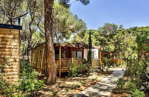"Deluxe", 3-room mobile home 45 m2, on the upper ground floor. Modern and tasteful furnishings: living/sleeping room with 1 sleeping facility (80 cm), dining table, TV and air conditioning. Exit to the terrace. 1 room with 1 french bed (170 cm). 1 room with 2 beds (70 cm, length 180 cm), 1 x 1 bunk beds (70 cm, length 180 cm). Open kitchen (4 induction hot plates, freezer). Shower/WC. Electric heating. Terrace roofed. Terrace furniture. Facilities: Internet (WiFi, free). Please note: non-smoking house. IT053006B1Z27P3GUF