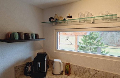 The vacation home itself impresses with its modern and stylish interior. The open living area with floor-to-ceiling windows offers you a magnificent view of the surrounding landscape. The fully equipped kitchen invites you to cook and in the cozy living room you can make yourself comfortable in front of the fireplace.