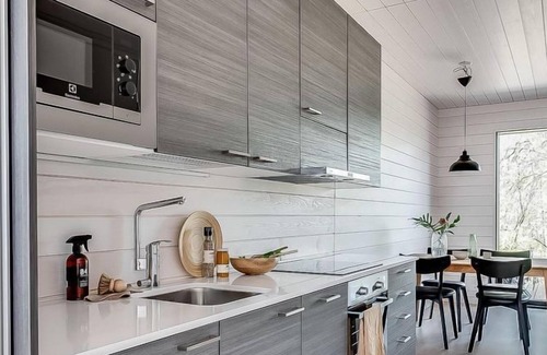 Magnificent 45 m² holiday apartment, built in May 2019. Living room with sofa bed for two, living room/kitchen, bedroom with two 90 cm wide beds, electric sauna (Harvia automatic; press water on stove), shower, separate WC, air source heat pump (for cooling), high-speed wired internet connection. Washing machine has drying feature.