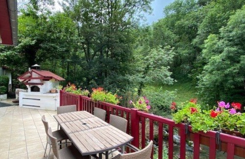 Surrounded by the Basque mountains, the vacation home "Maison Kukusoa En Bord De Rivière" is located in Estérençuby, near Saint Jean Pieds de Port (which is classified as one of the most beautiful villages in France) and creates an enjoyable setting for your stay by nature's side. The 130 m² property consists of a living room, a kitchen, 3 bedrooms and 1 bathroom and can accommodate 8 people. On-site amenities include Wi-Fi, a TV, a dishwasher and air conditioning.