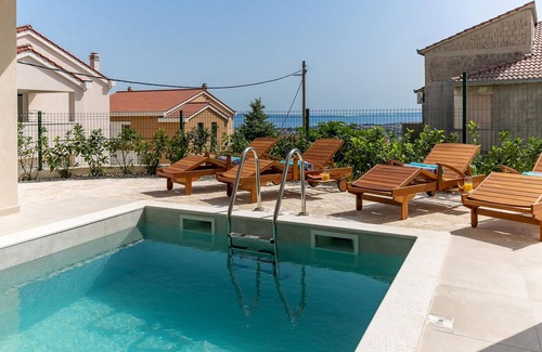 Vacation home with heated pool with covered terrace, stylish interior is located in Mravince. Vacation home with heated pool with covered terrace, stylish interior provides accommodation, featuring Private Pool, Ocean View, Balcony/Terrace, among other amenities. This House features Private Pool, Ocean View, Balcony/Terrace, to make your stay a comfortable one.