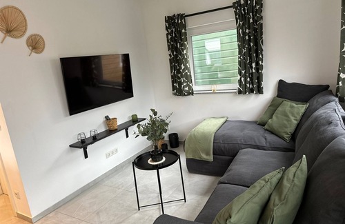 A living room and a desk are featured at this 3-bedroom, 1.5-bathroom rental. Bathroom amenities include towels and soap. The kitchen is equipped with an oven, a stovetop, and a refrigerator, as well as a coffee maker, an electric kettle, and cookware.