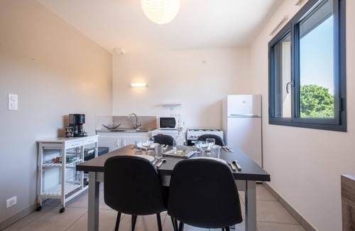 The kitchen is equipped with an oven, a refrigerator, and a dishwasher, as well as a microwave and cookware. And because there's a washing machine, you can go a bit lighter on your packing. Other amenities at this 1-bedroom, 1-bathroom rental include a dining area, housekeeping, and heating.