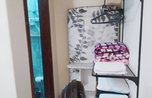 While you're here, you can enjoy all the comforts of home and more, including internet and air conditioning, as well as an ironing board and laundry facilities. Other amenities include towels, soap, and toilet paper.