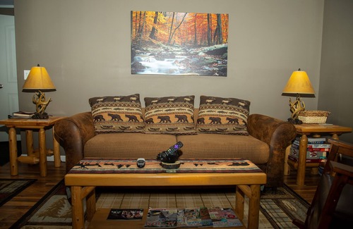 Instantly feel at home in this cabin feel second level, two-bedroom apartment. The first bedroom has a queen bed, second bedroom has two twin beds. The cozy living room area is open to the well-appointed kitchen. This large open area offers family or friends to gather for that next great meal.