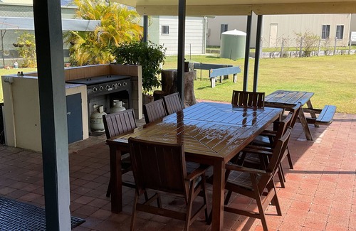 Large spacious house, 5 bedrooms, 2 bathrooms, verandahs front and back, large undercover bbq area, fire pit, fridge/freezer, freezer and beer fridge. All you need for a good holiday, close to the beach and bush.
