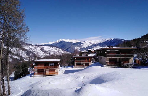 Rent apartment on the ground floor of a 3-unit chalet, T2 of 35 m2 fully equipped for 6 people in Valmorel in the housing estate La Charmette,