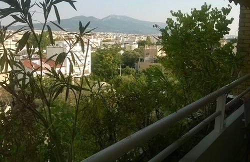 Ideal two bedrooms penthouse, at the top 5th floor of an apartment building, surrounded by huge garden and spectacular trees, located in North Athens at the area of Marousi, 10 minutes walking distance to suburban railway station that leads you to the airport and to the center of Athens in 20 minutes.