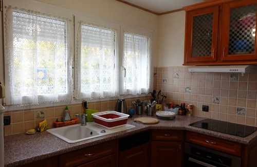 2 bedrooms, one with 2 bunk beds (1m90 X 90) and one bedroom with 3 single beds (1m90x90). Kitchen equipped with ceramic hob, extractor hood, microwave, dishwasher, oven, coffee maker, kettle.
