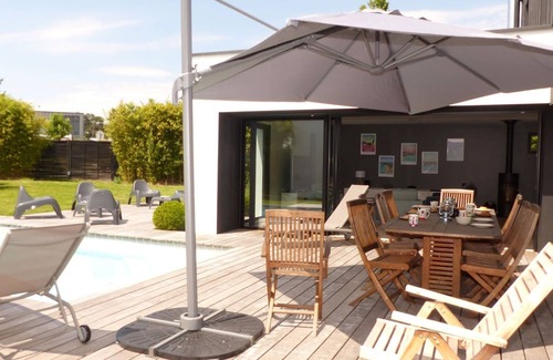 Situated in a quiet residential area of Vannes, this vast, modern house boasts top-quality features, a private garden and a lovely swimming pool with terrace. This exceptional location will enable you to enjoy the Vannes region in optimum conditions.This superb house, with its swimming pool, comprises a large room overlooking the garden on the ground floor, comprising a living room, a lovely open-plan kitchen, a private suite (bedroom + dressing room + shower room), a toilet, a utility room and a garage. Upstairs, the sleeping area comprises four bedrooms and a bathroom.The house has a superb garden with terrace and swimming pool (open from May to September).The accommodation> 1 living-dining room> 1 beautiful separate kitchen> 5 bedrooms (sleeps 10) with 160cm beds that can be separated into 2 single beds.> 1 shower room and 1 bathroom> 2 WCS> 1 garden and 1 swimming poolGarden furniture, barbecue, WiFi.Smoking is not permitted inside. Pets are not permitted. Parties are not permitted.Parking available in front of the house (2 cars).PLEASE NOTE : > This house is for family use only, no groups.> Linen must be provided. Cost of €22 per person to be paid extra on arrival. This includes disposable bed protectors, sheets, two towels per person, bath mats and tea towels.> Swimming pool open and heated only from mid-May to mid-September. Children must use the pool under parental supervision.> Pets are strictly forbidden in this house, which is not pet-friendly. Failure to comply with this rule may result in an additional charge.Located in a quiet residential area, close to Vannes city centre and shopping areas. Close to the main roads for easy access to Arradon, Baden, Auray, Carnac and Quiberon.Leisure activities : Walks to discover the historic city centre of Vannes and the Gulf of Morbihan nature park, cruises on the Gulf, relaxing on the many beaches in the region, hiking on the many signposted footpaths and cycle paths, water sports (surfing, kite-surfing, sand yachting, kayaking, sailing school, etc.), golf (Baden golf course is 20 minutes away by car), tennis. Discover the local heritage and gastronomy.The Gulf of Morbihan is above all an unspoilt region where nature retains its rights and the maritime element is omnipresent. Ranked as one of the most beautiful bays in the world, its diversity and spectacular scenery prove every day that its title is well-founded. The combination of the Gulf of Morbihan and the Bay of Quiberon creates a privileged environment where life is good.Vannes, its capital, is a historic town nestling at the head of the Gulf, with all the services and shops you need to explore the region's many landscapes. Take advantage of the entertainment in the port and the town, visit the megalithic sites in the region (Carnac, Erdeven), stroll along the quays of the marinas (La Trinité-sur-mer, Le Crouesty), discover the beaches of the region (Carnac, Quiberon, La presqu'ile de Ruys) and the many water sports activities available in the region, all of which will make for a memorable holiday.Morbihan Conciergerie is a housekeeping service for second home owners and their guests. We look forward to welcoming you to this modern, high-standard house.Our aim is to provide you with advice, assistance and answers to your questions to make your life easier. You'll have a dedicated contact to make your stay as pleasant as possible and help you discover the region in the best possible conditions.