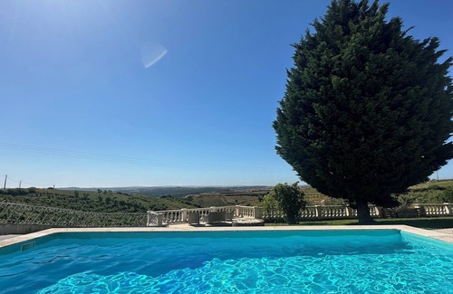 Moradia com uma magnifica piscina com vista privilegiada para a serra do Montejunto com bastante privacidade, espaço zen ao som da natureza, churrasqueira, poço e um lindo jardim rodeado de relva e calçada portuguesa.