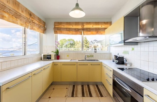 Unwind on the balcony with captivating sea and mountain views, warm up by the indoor fireplace for a cozy evening and relax in the backyard.