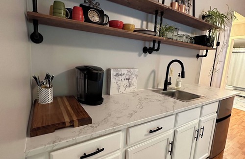 Walk to Brew Haus, Gary’s Restaurant and Verona Beach State Park. Sylvan Beach 1 minute drive. 10 minutes to Turning Stone Casino. Uber available. Bbq and fire pit for your use. Plenty of parking for boats and trailers. Relax by the duck pond or walk the trails of the State Park. Always peaceful here. Attention to detail. Always spotless for your arrival. Tv in bedroom and living room. Hot plate allows you to cook breakfast or dinner. Large yard with plenty of places to relax. Grill , chairs, fire pit and corn hole for your enjoyment.