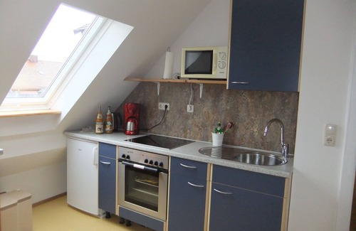 For a good start to the day can be found in the kitchen in front of a fully equipped kitchenette and a nice dining area by the window. All common utensils for daily use are available, electric cooker (ceramic hob + oven), microwave, refrigerator, coffee maker, kettle, toaster, dish towels and the usual crockery.