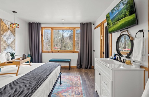 Vibrant Family Suite | Cozy, Colorful Retreat for All Ages at Green Acres is located in Hancock. Vibrant Family Suite | Cozy, Colorful Retreat for All Ages at Green Acres provides accommodation, featuring Air Conditioner, TV, Internet, among other amenities. This Hotel features Air Conditioner, TV, Internet, to make your stay a comfortable one.
