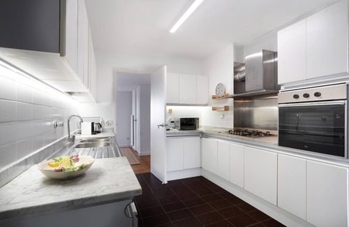 The kitchen is spacious, with enough space for cooking, and is fully equipped with everything you may need during your stay.