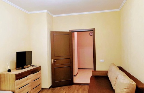 New bright apartments in a new house 15 minutes from the center. The apartments are located on the 7th floor with a total area of 42 sq / m. It features a kitchen with kitchenware and appliances. Guests can cook their own meals. Also linen and towels. There is free WI-FI, TV, washing machine, toaster, microwave, hob, kettle, fridge, hairdryer, iron. Forbidden: pets, parties, smoking in the apartment.