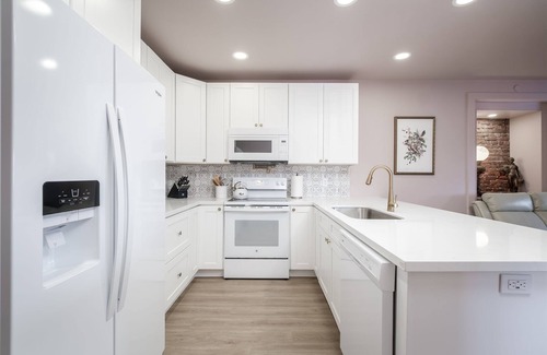 "Rose" is a new two bedroom, two bathroom apartment in the recently renovated Lutterloh building in downtown Cedar Key. Rose is on the second floor of the Lutterloh building which now also houses the new Main Street Mercantile. "Rose" is beautifully adorned with reclining Italian leather couches in the living room, a large kitchen with bar seating, two bedrooms each with king sized beds, an ensuite full bathroom, full hall bathroom, and laundry closet. Private boat trailer parking available for our guests directly behind building in grassy area.