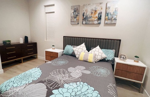 Luxury new built with gym, pool, BBQ and patio. 30 feet high ceiling with tall glasses, natural light and mountain view. Spectacular floating stair cases. Full kitchen, wet bar and two living spaces. Bedroom with TV. Close to LA downtown.