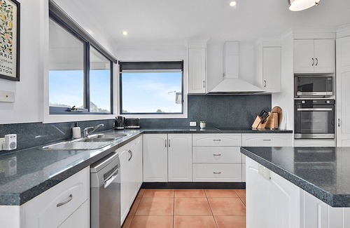The modern open plan kitchen, dining & lounge areas open up onto a deck. The deck has a cosy lounge space, which takes in the views of Bass Strait. There's also a gas bbq, to cook up a storm of locally caught fish!