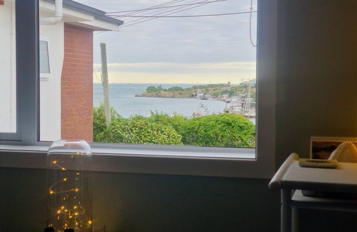 Double room in a private wing with bathroom, toilet and lounge room looking out to the Harbour, complimentary tea, coffee, wine and chocolate in a quiet private home. Close to beach and town. No breakfast provided, however walking distance to cafes.