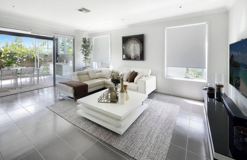 The front of the house has a rumpus room and a full bathroom for easy access downstairs. The back of the house has the main open plan kitchen, living and dining space that connects to a completely enclosed entertaining space with built-in kitchenette, additional dining area with a table, and a living/sitting area. This area leads out to a small side area with grass and another small back area which includes a clothesline. The kitchen includes all modern appliances such as a coffee machine, dishwasher, oven/cooktop, basic pantry items, cutlery and dishes.