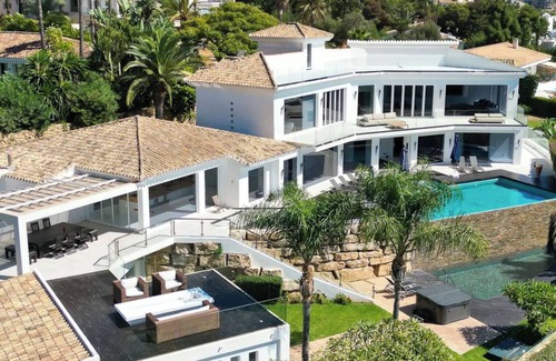 With a view of the Mediterranean Sea, the villa 149 in Marbella is perfect for a relaxing holiday. The 750 m² property consists of a living room, a fully-equipped kitchen, 6 bedrooms and 6 bathrooms as well as 2 additional toilets and can therefore accommodate 14 people. Additional amenities include high-speed Wi-Fi (suitable for video calls), a smart TV with streaming services, air conditioning, a fan, a washing machine as well as a dryer. Furthermore, a private sauna, a table tennis table, a private gym and gym equipment are available on the property. 3 high chairs and 3 baby cots are also available.