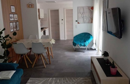 Located in Dörzbach, the holiday apartment "Villa am Bacho" with step-free access and interior has everything you need for a relaxing holiday. The 3-storey property consists of a living room with a sofa bed for one person, a kitchen, 1 bedroom and 1 bathroom and can therefore accommodate 3 people. Additional amenities include high-speed Wi-Fi (suitable for video calls) as well as a smart TV with streaming services. A baby cot and a high chair are also available. This vacation rental features a private garden, an open terrace, and a balcony.
