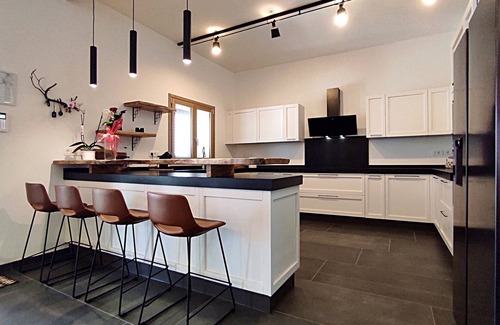 - A kitchenette with a comfortable peninsula, fully equipped with an induction hob, coffee pod machine, dishwasher, electric oven, and microwave.
