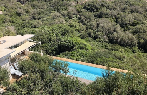 Our Menorquin architect's villa built 250 meters from the beach will seduce you with its modern style and perfect privacy. Located on a dead end street our villa was built on the edge of a canyon with magnificent sea views.
