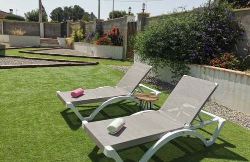 Bedroom 1 has 2 single beds. Bedroom 2 has 2 single beds. Bedroom 3 has 1 standard double bed. Walking/driving distance to nearest bar: 773m. Walking/driving distance to nearest cafe: 2.07km. Walking/driving distance to nearest restaurant: 440m. Walking/driving distance to nearest supermarket: 3.82km. Walking/driving distance to nearest beach: 30.5km, Platja Port Saplatja. Airport Valencia: 24.6km. Free parking is available on the property (3 parking spaces) and on the street. Families with children are welcome. Wi-Fi is available and suitable for video calls. The property has a step-free interior. Towels and bed linen are included in the price (one per person). Beach/pool towels are provided.