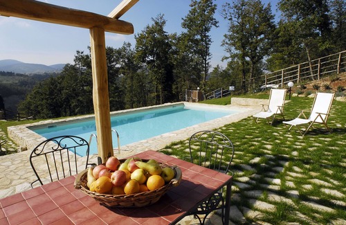 Views from the swimming pool are of the classic countryside, hillsides, forest and the ancient village of Collelungo, providing twinkling lights at night.