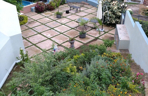 The property is almost an acre in size and the gardens are planted with lots of local fruit and flowering trees and plants.