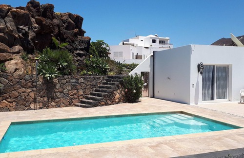 Villa Essence is a unique detached villa on it's own 1000m2 plot, with heated private pool, jacuzzi, gardens, patios and stunning ocean and mountain views. The villa is situated just on the brow of the hills on the south side of the island in the peaceful village of Conil commanding far-reaching views of the southern mountains and ocean out to the islands of Fuerteventura and Isla de Lobos. Though rural it is only 10 minutes from the airport and 10 minutes from the main tourist centres of Puerto del Carmen and the marina at Puerto Calero. With a small local shop and a tapas bar within walking distance, and larger supermarkets just 5 minutes away in Macher and Tias, the villa is perfectly positioned for a relaxing stay. For those more energetically inclined the villa has a number of excellent walks closeby and easy access by bike to all manner of cycle routes, from the easy cruise to the seriously challenging. The villa is located directly on the newly created GR131 walking/mountain biking route which spans the island from Playa Blanca in the SW to Orzola in the NE - it literally goes past the gate!